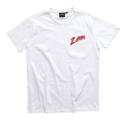 LABL logo that exhibits speed and fire on the front. At the back is the Old Fashioned inspired Motorcycle in Orangey Red.